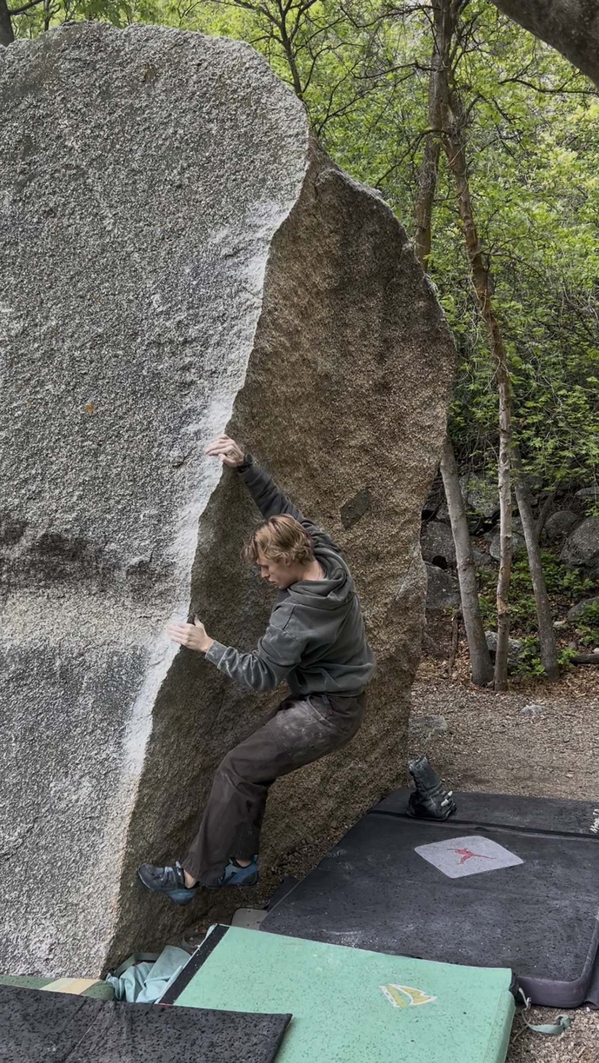 When I moved here as a sapling 25 year old my sole intention was to climb 5.13 on gear by the time I was 30. I didn't have a lot going for me at the time, but I knew I loved rocks and I wanted to surround myself with community that felt the same. I'm now in my 27th year, which means to stay on track I need to send 5.12b on gear. I've been spending very little time trad climbing in 2026 primarily due to a dearth of partners, but I feel like I'm sowing the seeds of success through sport climbing and bouldering. In the last 4 weeks I sent my second 5.12b mixed route in LCC and my first V8 in the canyon. For some reason I don't count mixed routes as trad sends (especially if the crux is bolted), but maybe I should give myself more grace.